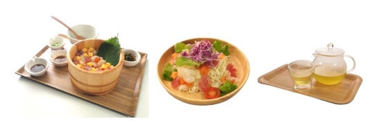 お盆や器も木の茶色と陶器の白で統一 (写真はイメージです)