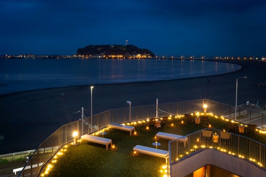 客室やルーフトップテラスから眺める、江の島のシンボル「シーキャンドル」のイルミネーションは、とても幻想的です。クリスマスディナーを味わった後は、余韻に浸りながら、イルミネーションを眺め、心地よい眠りにつく。