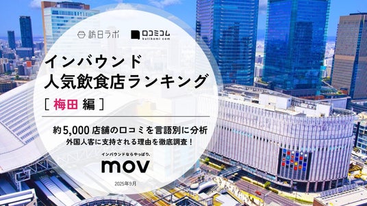 業界最大級のインバウンドビジネスメディア「訪日ラボ」及び 店舗向け集客一元化プラットフォーム「口コミコム」を運営する株式会社mov(代表取締役:渡邊 誠、本社:東京都渋谷区、以下mov)は、梅田エリアの飲食店に寄せられた最新の口コミデータから、独自の『インバウンド人気観光地ランキング』を発表しました。