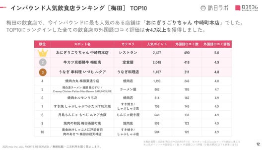【独自調査】2025年最新:外国人に人気の飲食店ランキング[梅田 編]1位は「おにぎりごりちゃん 中崎町本店」!| インバウンド人気飲食店ランキング #インバウンド #MEO