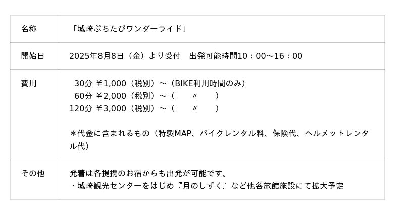 「城崎ぷちたびワンダーライド」について