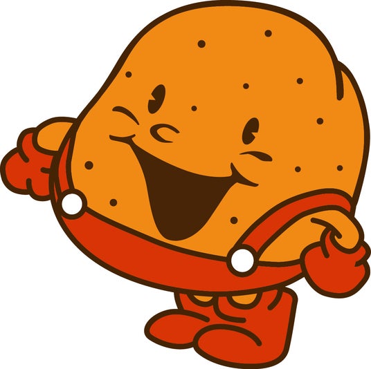 じゃがいもに見立てたキャラクターと「元気な名前で新発売」というキャッチコピーを使用したCMも放映。じゃがいものような見た目と欧米スタイルの味わいが注目を集め、最盛期には1日約30万個を販売し、1984年には日経・年間最優秀賞を受賞する大ヒット商品となりました。