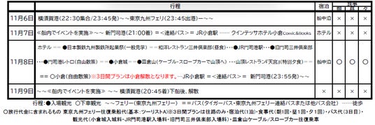 3日間プラン(復路乗船なし/小倉解散) 49,800円