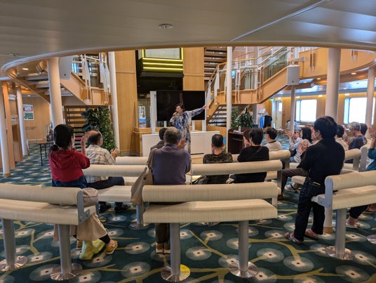 往路のフェリー船内ではツアー気分を盛り上げる特別ライブをお楽しみください。
