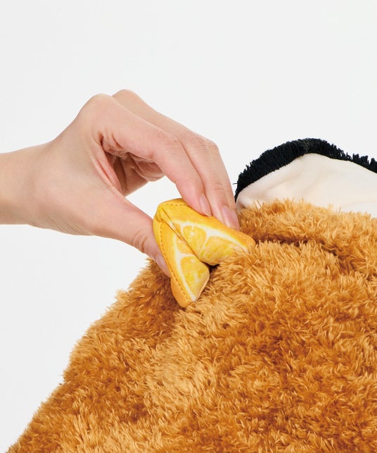 抱っこ牡蠣クッションにかぶせるだけで簡単に着せ替えられます。ぷるんとした色白の牡蠣が、こんがりキツネ色に衣替えです。