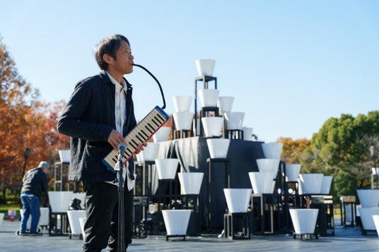 交流から音楽を作ってきた作曲家。国内外で様々なプロジェクトを実施。邦楽、オーケストラ、ガムラン、合唱、電子音、瓦、吹奏楽など、魅力的な音なら何でも作曲する。著書に『音楽の未来を作曲する』(晶文社)ほか。千住だじゃれ音楽祭ディレクター。パープルリボン作曲賞審査員。鍵盤ハーモニカのパイオニアでもある。(撮影:冨田了平)