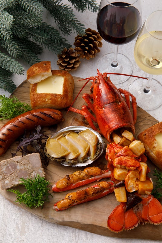 サステナブルロブスターとホタテのアメリケーヌソース和え、蟹と北海道産雲丹の炙り焼き、玄界灘産鮑の昆布だし煮、糸島雷山あらびきソーセージ、自家製パテ・ド・カンパーニュをセット。そのままでも、自家製チーズソースでチーズフォンデュとしても楽しめます。