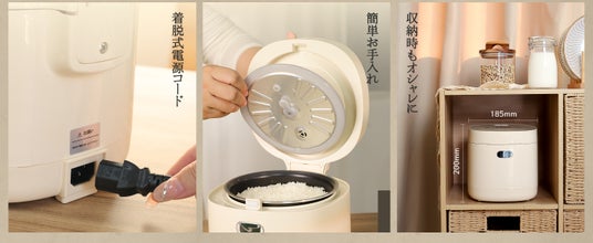 高熱伝導率の金属製内釜を採用したこの小型炊飯器は、わずか300Wの消費電力で省エネ設計です。
