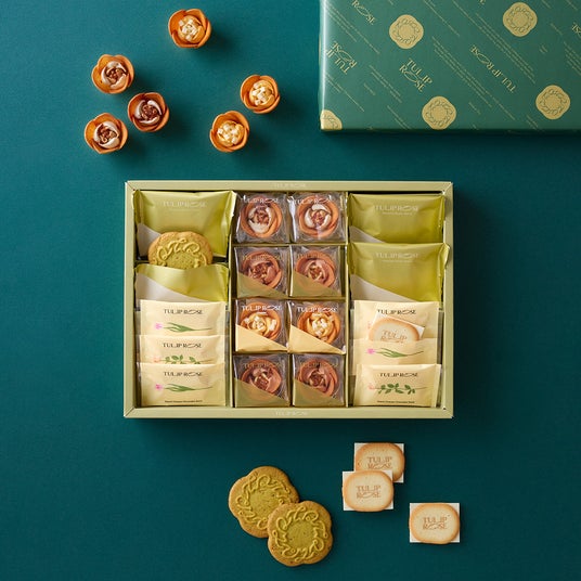 2品目は、累計販売数5000万個を突破したブランド代表作『チューリップローズ』から、乳のうまさを突き詰めた『チューリップローズ チーズ』が誕生します。ミルキーなチーズの味わいを目指して、フランス産クリームチーズ香るラングドシャクッキーにクリームチーズ&カマンベールの生食感ショコラクリームをしぼりました。贅沢なコクのカマンベールショコラを散りばめて、味わいのアクセントに。フランス産発酵バター&北海道ミルク仕立ての『チューリップローズ バター』と2味セットです。