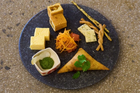 5.じゃが芋のインド風サモサにミントとコリアンダーソース添え