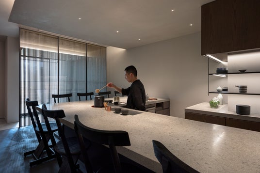 日本茶を基軸に、アジアの香り(エッセンス)を楽しむTea Bar 聴景居。クラフトや伝統的なデザインと同様に、お茶の楽しみ方もアジア各国でそれぞれに異なります。 その違いや面白さを静かに味わえるよう、茶室のようなBARのようなカウンター8席の空間をつくりました。