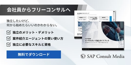 株式会社Anfini(本社:東京都港区、代表取締役:橋本 純)が運営する日本最大級のSAP専門メディア『SAP Consult Media』は、会社員からフリーランスのコンサルタントを目指す方に向けた『【2025年最新版】コンサルタント独立ガイドブック』を公開いたしました。