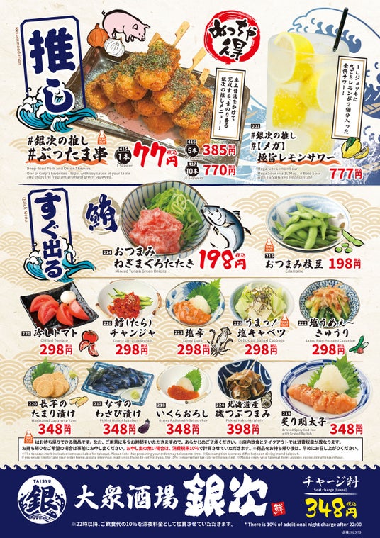 2025年10月7日(火)東京都千代田区の神田小川町に、コスパ抜群の海鮮系大衆居酒屋「大衆酒場 銀次」の1号店をオープン!2日間限定で"全品半額" のオープン記念セールを開催!