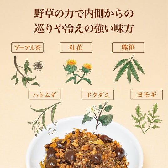 ホットでもアイスでも美味しいため、季節を問わずいつでも飲んでいただきたい一杯。緑茶や麦茶の代わりの飲み物としてもぴったりです。毎日飲み続けていただくことで、野草の恵みを存分に引き出すことができます。
