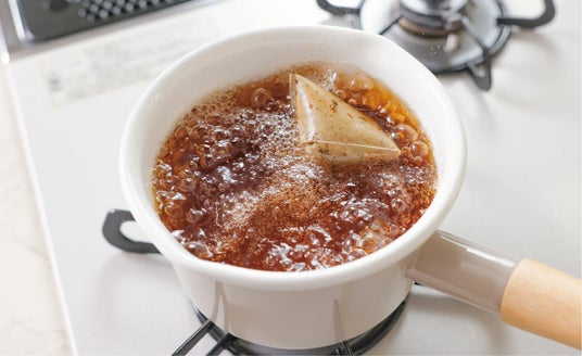 煮出す場合:沸騰した1~1.5リットルのお湯にティーバッグを入れ、弱火で約3分煮出して完成です。
