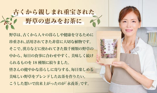 年齢のゆらぎにやさしく寄り添う新習慣のお茶「永養茶」|登録者数65万人の管理栄養士「関口絢子」が18種類の野草を独自にブレンド