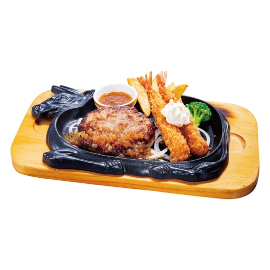手ごねハンバーグ&エビフライ