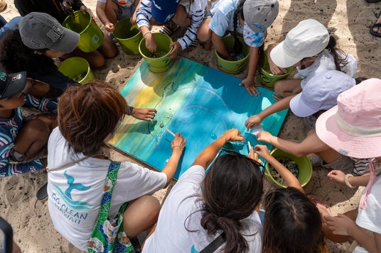 ビーチクリーンで子どもたちが拾ったマイクロプラスチックアートのワークショップを実施し、その作品は、今後ハワイで展示される予定です。