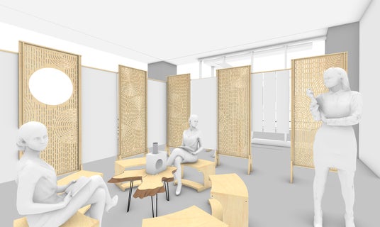 壁面に施した枯山水(かれさんすい)モチーフのパターンは、庭の「間」や視線の流れを現代的に翻訳するとともに、抹茶を点てる瞬間の集中と静けさを際立たせます。また、VUILDのテクノロジーを活用してデザイン・製作した木質フレームと精緻な抜き加工により、軽量でありながら視覚的な深みを持つ構造を実現し、茶室内部では機械と所作が自然に共存する設えを意図しています。こうした設計は、伝統の所作とテクノロジーの即時性を並置させることで、茶畑の大自然を身近に感じられるような、CUZEN MATCHAの世界観溢れる茶室を実現しました。