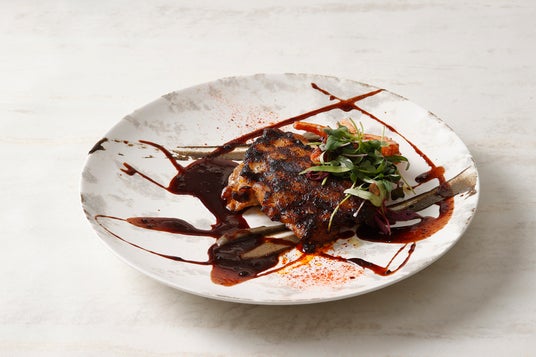 信玄鶏腿肉のバターミルクマリネ ザクロとハリッサのソース