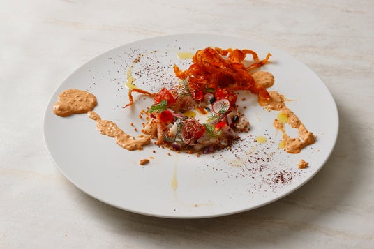 スターターには、西京味噌とバターミルクのコク深いソースとさっぱりとした柚子やスマックのスパイスが交わう水蛸とシーフードセビーチェや、アランチーニやグリュイエールチーズのバゲットが入った温かいオニオングラタンスープが登場。