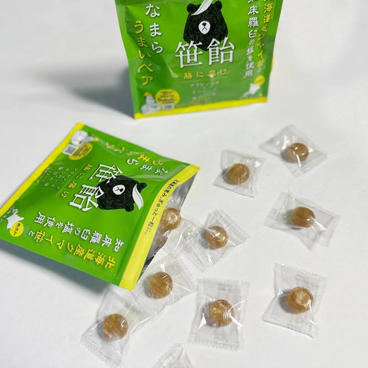 原材料:水飴(国内製造)、砂糖、食塩、クマイ笹エキス(クマイ笹若葉(北海道産))