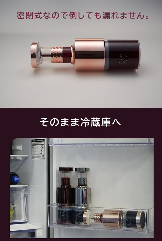 ワインを本製品に移して軽くプレスすることで空気が完全に抜ける構造です。