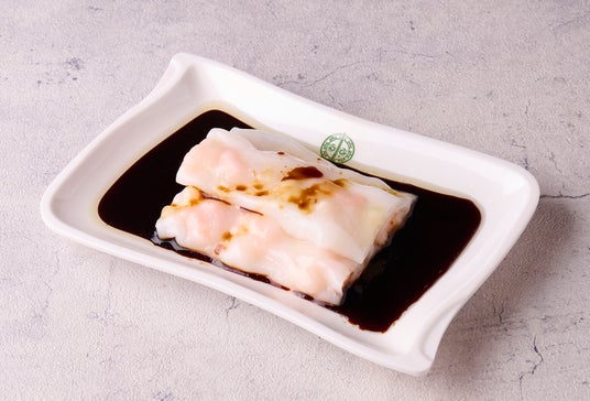 薄く延ばした米粉生地で海老や黄ニラを巻いた、ツルンとした食感が味わえる一品。