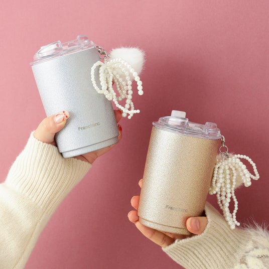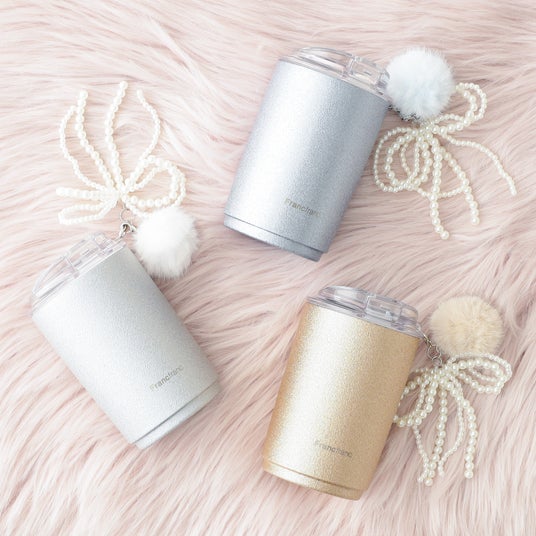キラキラとしたラメが目を惹くチャーム付きのタンブラーです。アパレルトレンドの"チャームを楽しむ"感覚を取り入れた、遊び心あるデザインです。チャーム部分は取り外し可能なので、自分の好きなチャームにカスタマイズしてデコレーションを楽しめます。華やかなゴールド、トレンド感あふれるオーロラ調シルバー、冬らしいブルーの3色をご用意しました。ホリデーシーズンを華やかに演出するギフトとしてもおすすめです。
