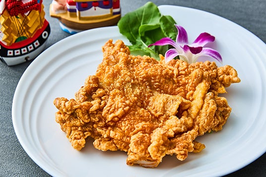 柔らかな肉質と濃厚な旨みとコクが特徴の"長崎ばってん鶏"のもも肉を薄く開き、 香辛料とにんにく、しょうがをすり合わせ2~3時間寝かせます。しっかり味が染み込んだ状態で揚げることで、衣のザクザク感と鶏肉のジューシーな食感をお楽しみいただけます。スパイシーな味付けがお酒との相性もピッタリな一品です。