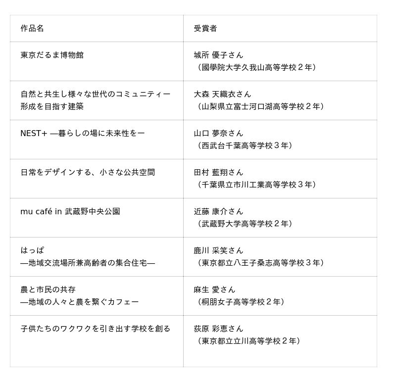 【武蔵野大学】『第2回高校生空間デザインアイデアコンペ~建築で描く、地域の未来。~』の受賞作品が決定!