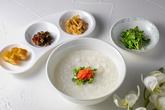 コースの終盤は、中国の伝統的な保健食品であり、身体を温める効果や内臓を養うとされ、養生の役割を果たす重要な料理の一つと伝えられている「中華粥」をご用意いたしました。ザーサイ、ピータン等のコンディメントとともにご堪能ください。