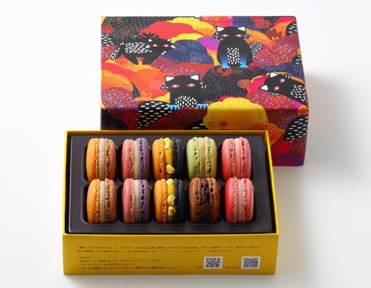 「Diaboliquement Delicieux(ディアボリックマン デリシュー)」=「やみつきになる悪魔的な美味しさ」のマカロン。かぼちゃの「ジャルダン ドートンヌ」や日本初登場の「アンフィニマン プラリネ ピスターシュ」など、6種を詰め合わせました。