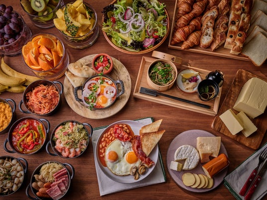 5階レストラン「The TAILOR YARD MAIN DINING」では「世界の朝食を巡る旅」をテーマに、和食を含めた選べるメインプレートに加え多彩な料理を取り揃えた約50種類以上のビュッフェをご用意。車両基地を眺めながら世界を旅するような朝のひとときをお過ごしいただけます。