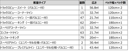 ※スーペリアコーナーツイン、トラックスビュー・コーナーツインはエキストラベッドを入れて3名でのご利用が可能。