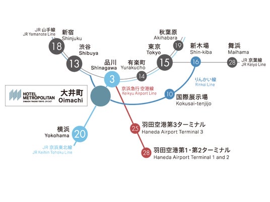 JR大井町駅に直結する「ホテルメトロポリタン 大井町トラックス」は、JRを含めた3路線が利用でき、東京駅や品川駅、羽田空港へのアクセスも良好。東京観光の拠点として最適なホテルです。