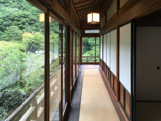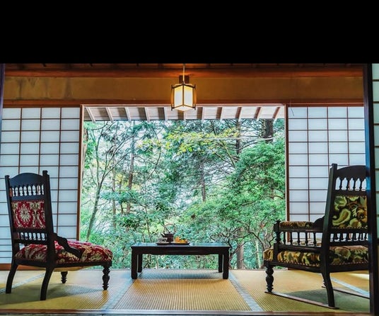 寿亭 水雲閣国登録有形文化財の水雲閣は皇族や文人も宿泊に訪れた旅館、寿亭の一室です。窓からは壮大な自然と御在所山頂へのロープウェイも眺められます。御在所は紅葉の名所でもあります。