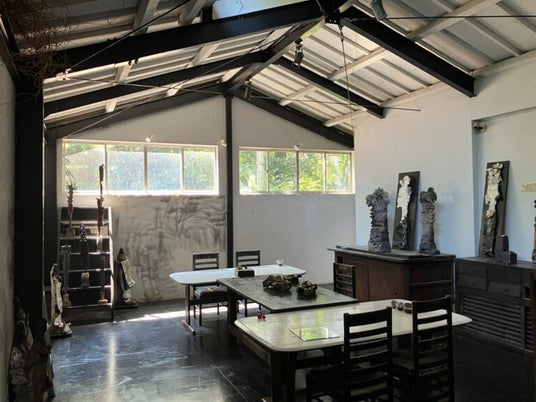 馬酔木窯四日市の陶磁器にアートの息吹を注ぐ役割を担った森正氏の工房兼ギャラリー。イオングループの共同創業者である実業家小嶋千鶴子氏も通った森の中の工房。