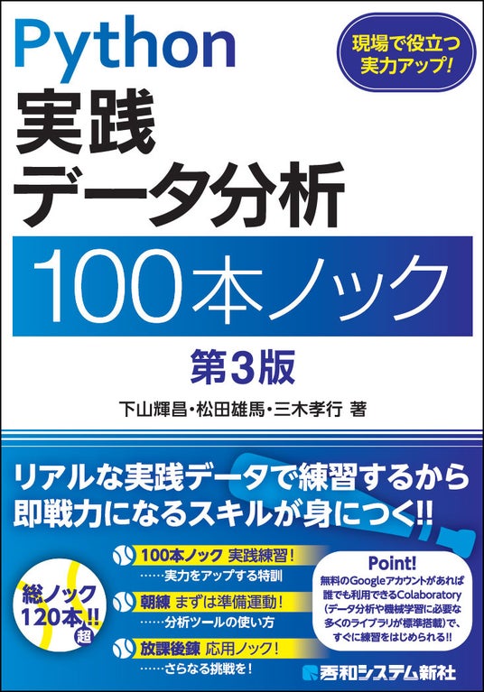 株式会社秀和システム新社(東京都千代田区・代表取締役 津島憲豪)は、2025年10月10日、新刊『Python 実践データ分析 100本ノック 第3版』を発刊します。