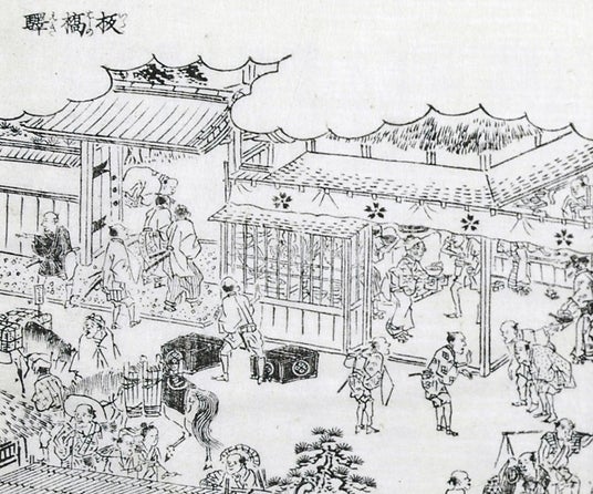 江戸時代、江戸を基点とした交通の要となっていた五街道。その1つである中山道のうち、江戸から数えて1番目の宿場町「板橋宿」では、宿泊施設や酒食を商う茶屋などがありました。諸大名の参勤交代や庶民の旅などで多様な人びとが訪れた板橋宿は、江戸の玄関口であり、旅立ちの見送りと出迎えの場として大いに賑わっていました。