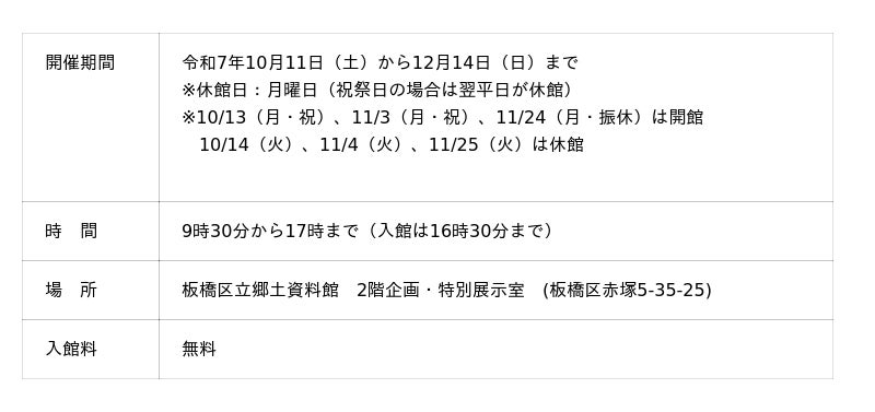 会場:板橋区立郷土資料館2階展示室
