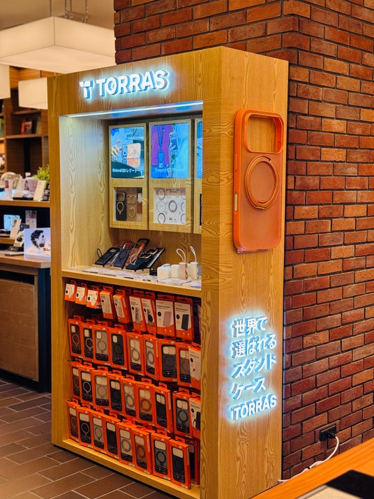 9月20日より、二子玉川 蔦屋家電のApple販売エリア近くにTORRAS専用展示棚を設置し、最新スマホケースや充電製品を展示・販売いたします。店舗のウッド調インテリアに調和した木製ディスプレイ棚を採用し、実際に手に取って品質やデザインを体験いただけます。Apple製品との相性も確認しながら、自分にぴったりのTORRAS製品をお選びください。