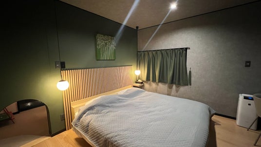 松島をモチーフにした「MATSU」と「UMI」2つの寝室は愛犬と一緒に寝られるようローベッドを採用。
