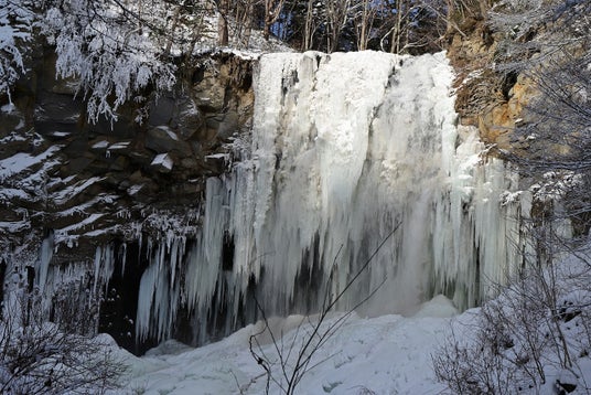 滝野すずらん丘陵公園内の「アシリベツの滝」では、この時期にしか見られない幻想的な景色を見ることができます。