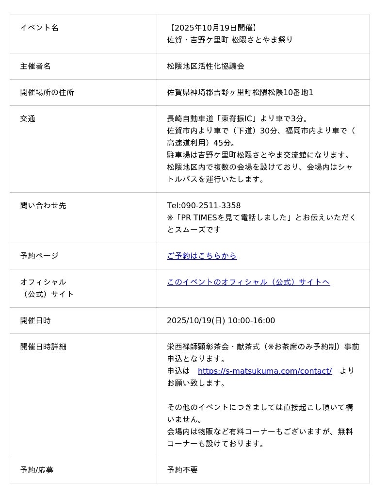 [佐賀・吉野ケ里町 松隈さとやま祭り] - [松隈地区活性化協議会]主催、[2025年10月19日]に開催