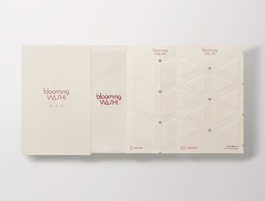 blooming WASHIは、今年1月に資生堂ギャラリーにて開催された、資生堂クリエイティブ初の展覧会「美を疑え-資生堂クリエイティブ展-」にて展示された作品です。はじまりは東日本大震災の影響を受けた地を訪れた、資生堂のヘアメイクアップアーティストの体験談。美が日常を取り戻す小さなきっかけになればという想いから、 "こころに寄り添う" をコンセプトにしたキットを制作しました。