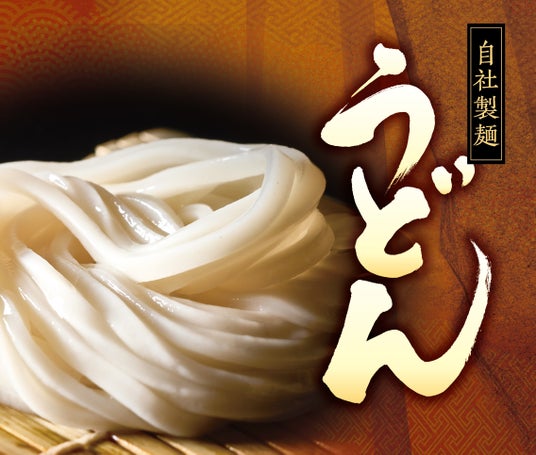 ■自社製麺『うどん』 小麦粉の香りと味わいを、さらに引き立てるこだわり製法。麺の長さと量を増やし、出汁との相性もさらに良くなりました。