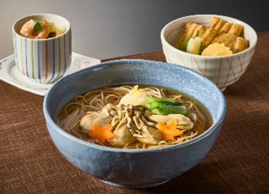 『"柚子の香り立つ"牡蠣おろしそばとミニあなごめしセット』2,110円 サガミ自慢のだしに牡蠣の旨みが溶け込み、ふんわり広がる柚子の香りが食欲をそそる一杯。挽きたて・打ちたて・湯がきたての"三たて"にこだわったそばと、牡蠣の旨みと柚子の爽やかさが調和し、ひと口ごとに贅沢な味わいをご堪能いただけます。