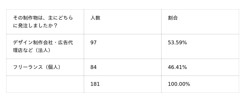 法人・フリーランスを問わず、デザイン市場全体の専門性が高く、安定した品質を提供できるパートナーを見つけやすい環境にあることがうかがえます。