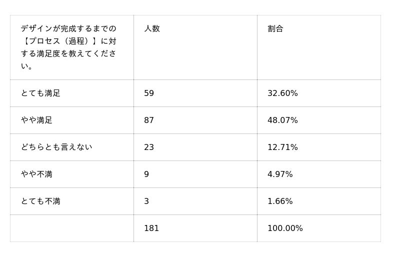 デザイン完成までのプロセスには8割以上が満足している